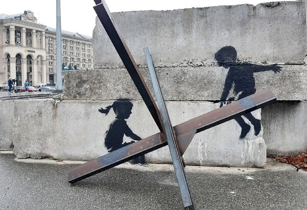 Image: Bansky' mural "Solidarity with Ukraine' at the Independence Square (Maidan Nezalezhnosti), Kyiv, Ukraine. Source: Wikipedia