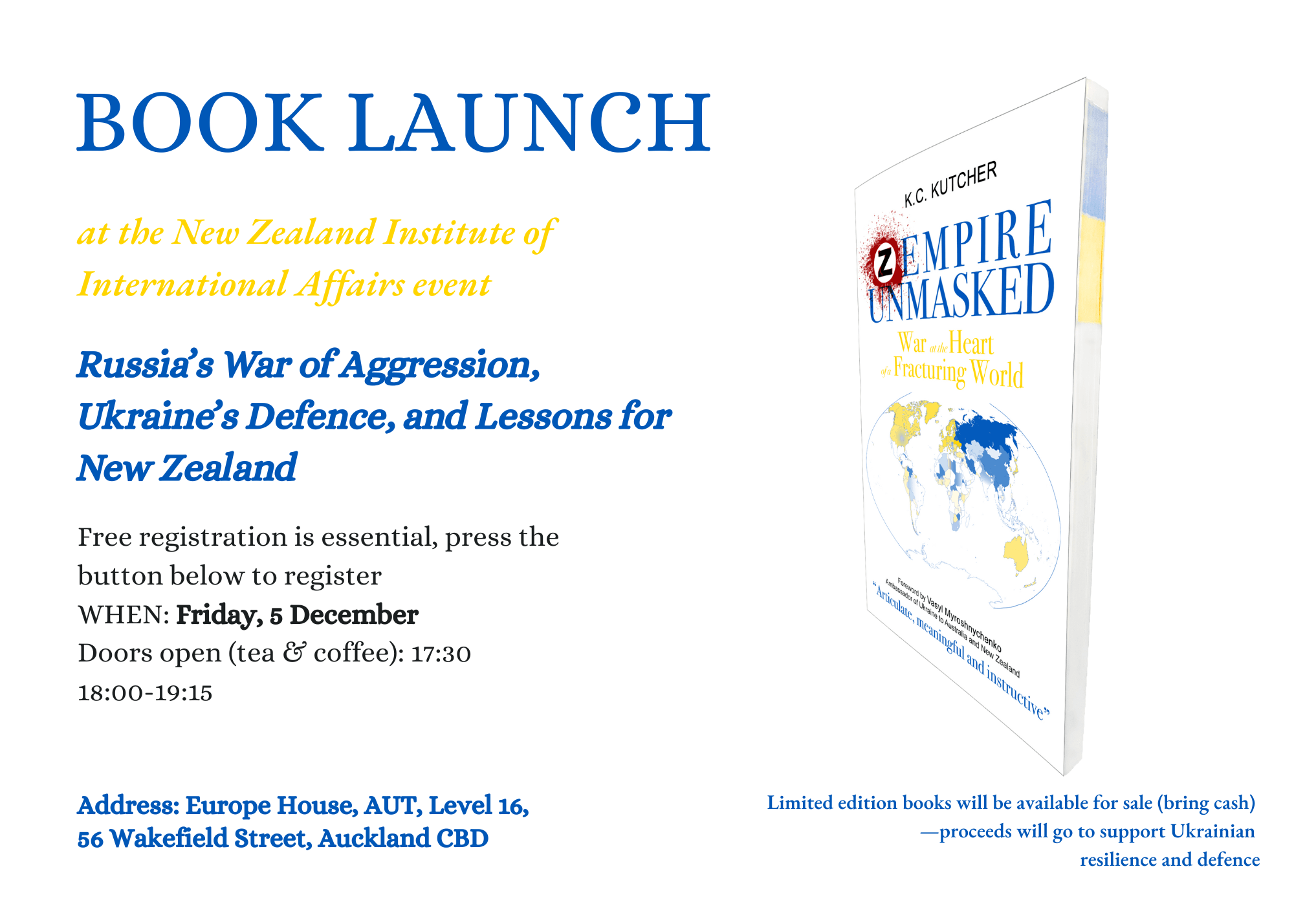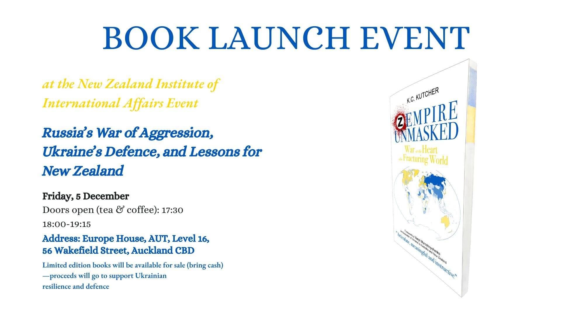 Ukrainian New Zealander Kyrylo Cyril Kutcher, a researcher and technology professional, will be launching his new book Z Empire Unmasked: War at the Heart of a Fracturing World.