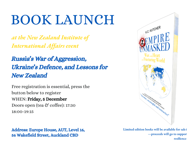 Join Kyrylo Cyril Kutcher — a Ukrainian New Zealander, researcher, and technology professional — for the launch of his new book Z Empire Unmasked: War at the Heart of a Fracturing World, featuring a foreword by Ambassador of Ukraine to Australia and New Zealand, Vasyl Myroshnychenko